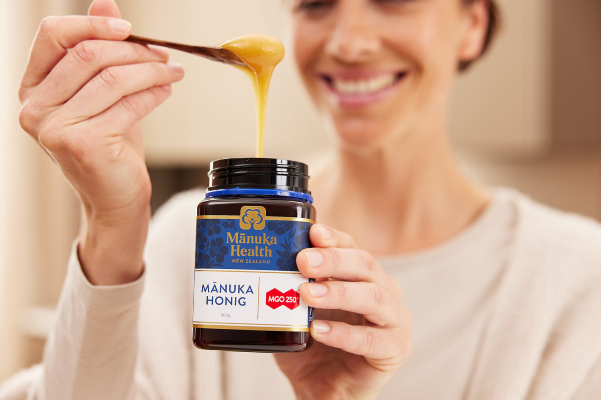 Today, Manuka Health sources authentic Mānuka honey exclusively from New Zealand. Every batch is carefully tested to verify its MGO content, resulting in a smooth, creamy honey with a rich, distinctive flavour.